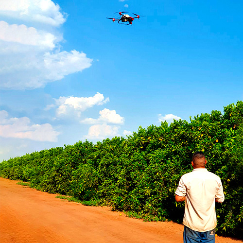 DRONES PULVERIZAÇÃOComo parte da evolução tecnológica de tratos culturais, a Cambuhy tem adotado a pulverização dos pomares com drone, o que permite maior eficiência operacional, além de contribuir para preservação do meio ambiente, com redução de até 99,8% do uso de água e 90% do uso de combustíveis fósseis. A tecnologia é recente e os parâmetros de aplicação para citros foram validados junto com o Fundo de Defesa da Citricultura (Fundecitrus). |